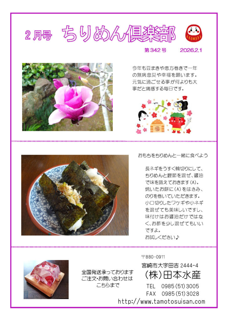 ちりめん俱楽部2月号 2026年1月27日 最終更新日時 : 2026年1月27日 tamotosuisan ちりめん俱楽部2月号をUPしました \ 最新情報をチェック / FacebookXBlueskyHatenaCopy