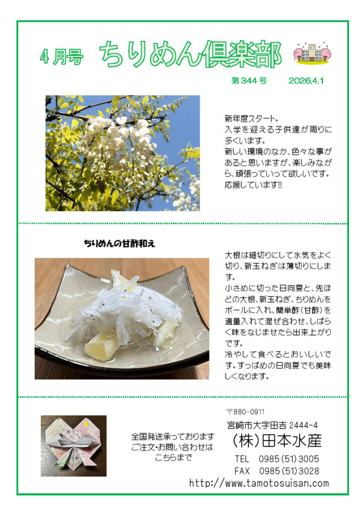 ちりめん俱楽部4月号 2026年3月26日 最終更新日時 : 2026年3月26日 tamotosuisan ちりめん俱楽部4月号をUPしました \ 最新情報をチェック / FacebookXBlueskyHatenaCopy